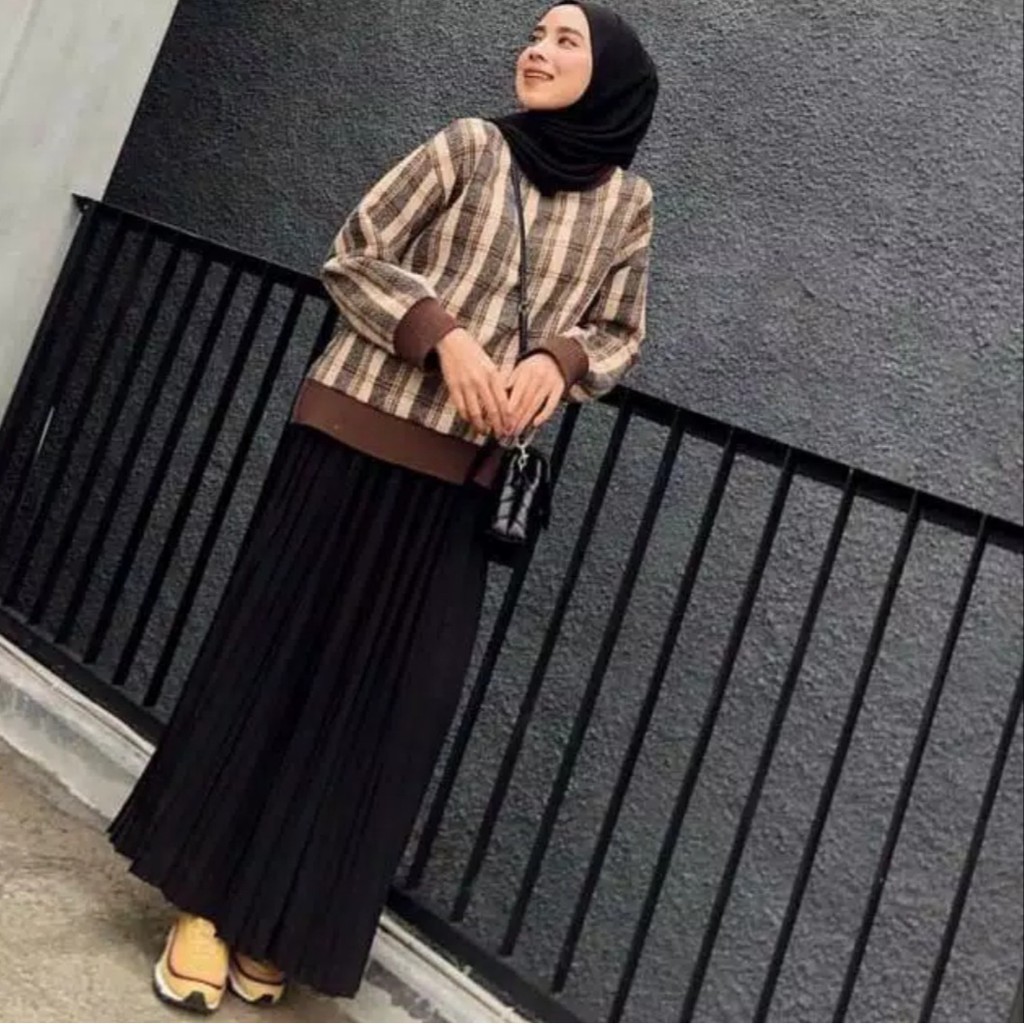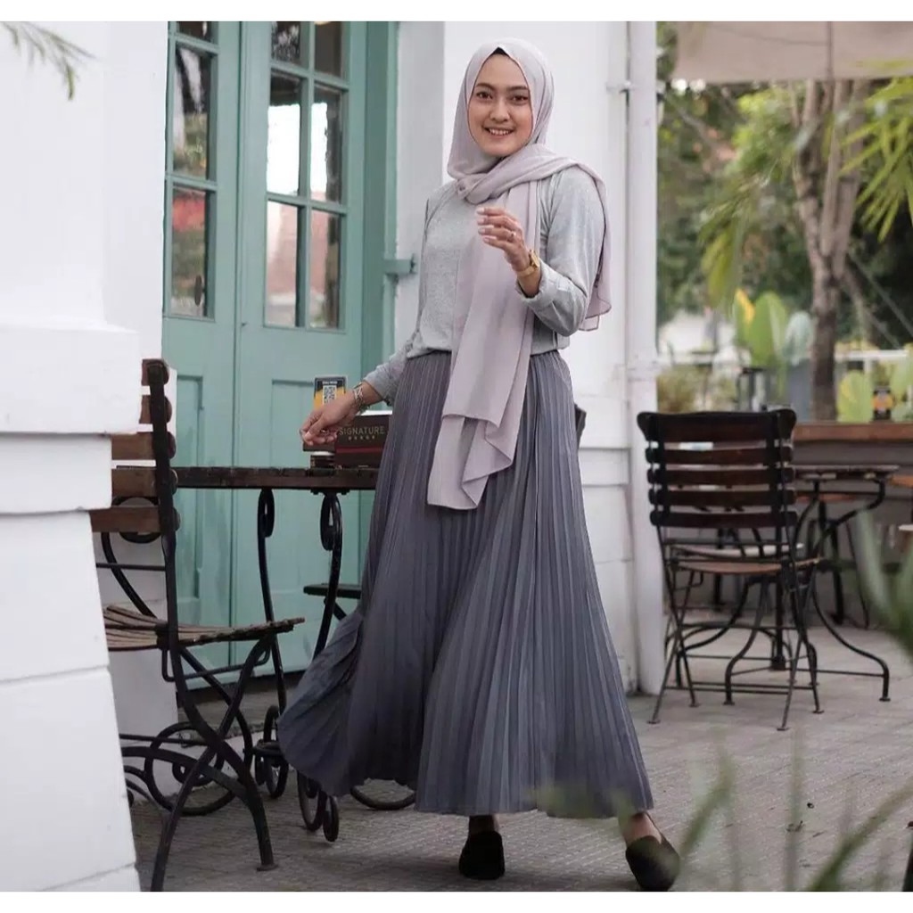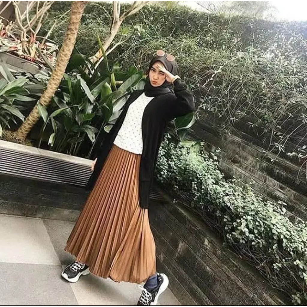 Rok Plisket Panjang Pakaian Perempuan Dewasa Murah Lebay Cod Fashion Muslim Wanita Milo Hitam Dll Shopee Indonesia