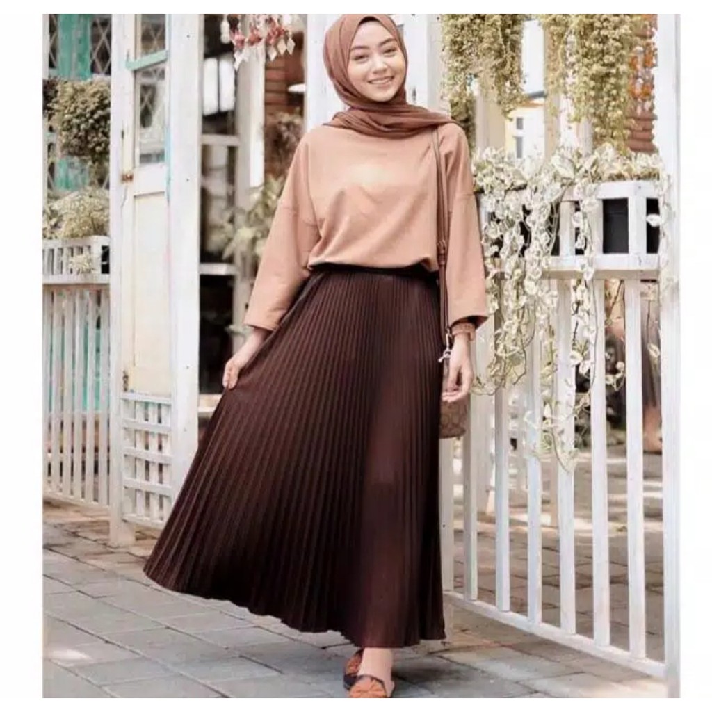 Jual Hokyfashion Rok Plisket Maxi Skirt Fit To Xl Cokelat Jakarta Barat Hokyfashion Tokopedia