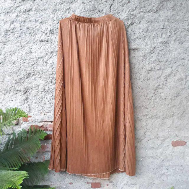 Rok Plisket Warna Coklat Tua Gaya Ootd