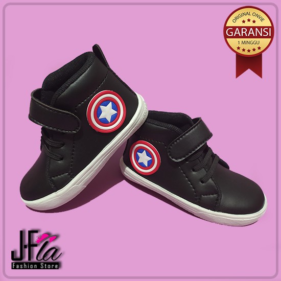 Jfla Sepatu Boots Anak Tali Perekat Motif Captain Amerika Karet 3d Shopee Indonesia