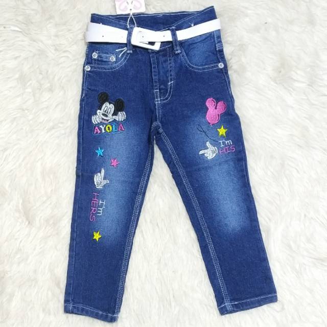 Murah Celana 7 8 Panjang Gantungan Mickey Import Jeans Anak Cewe Perempuan 2 3 Tahun Biru Shopee Indonesia